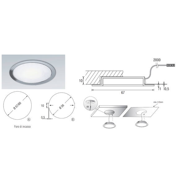 FARETTO SUN INCASSO ACCIAIO 1730020A LUCE CALDA TONDO 413 LM