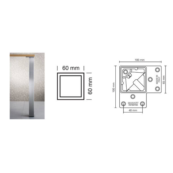 GAMBA QUADRA 60X60 ART.263R NERO OPACO H71CM IMBALLO 4 PEZZI