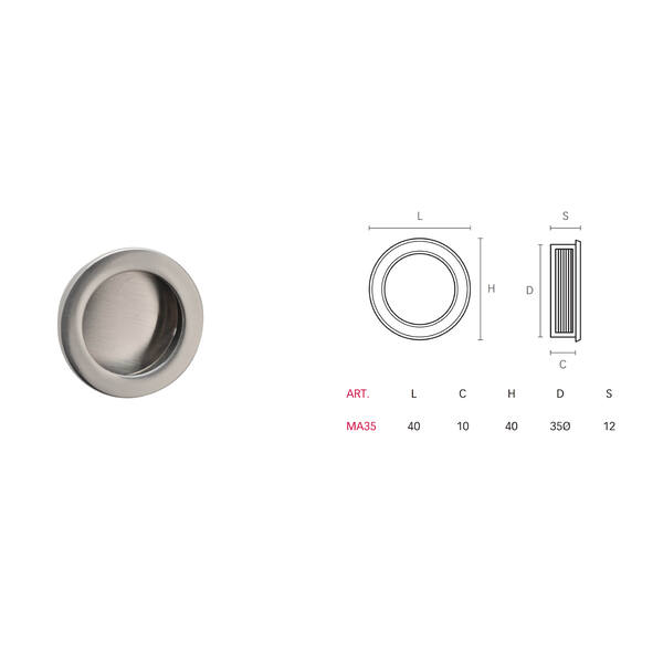 MANIGLIA 35 AD INCASSO D.35 CROMO