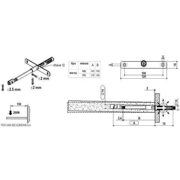 MENSOLA SCOMPARSA REGOLABILE 14X170 CROCE