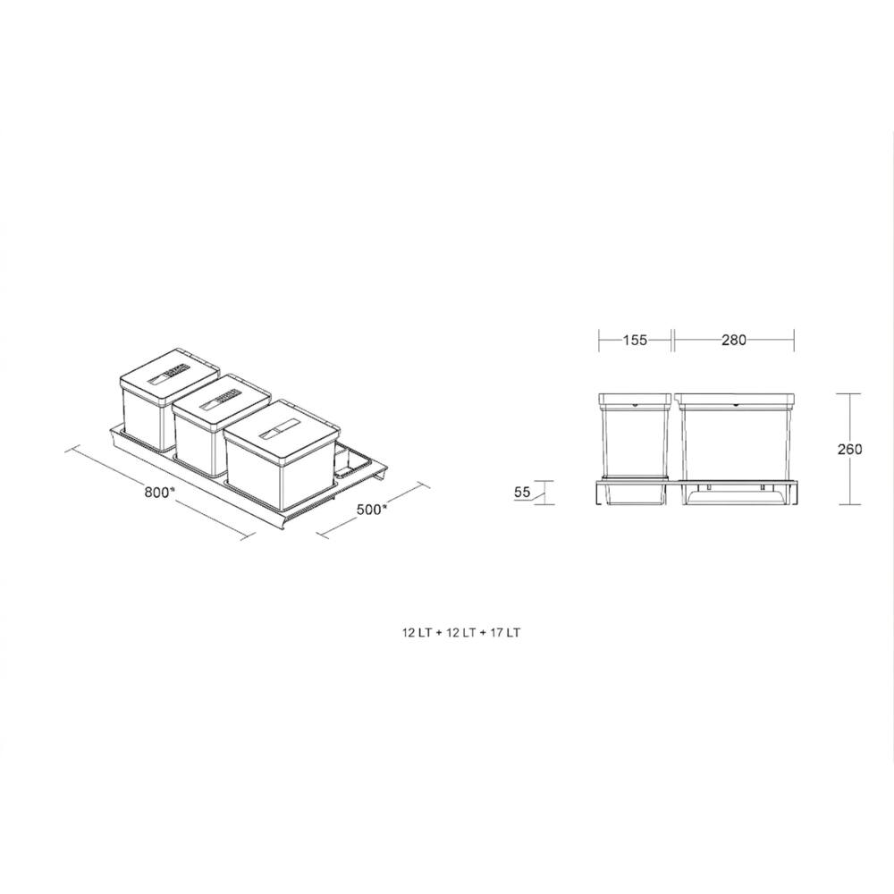 PATTUMIERA T2 X LEGRA. 80 P 50 3 SECCHI TITANIO