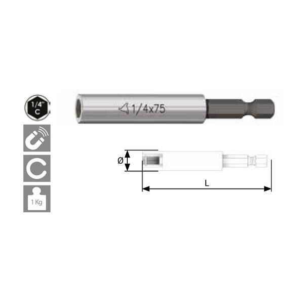 PORTAINSERTI MAGNETICO 1/4 D.10MM L.75MM