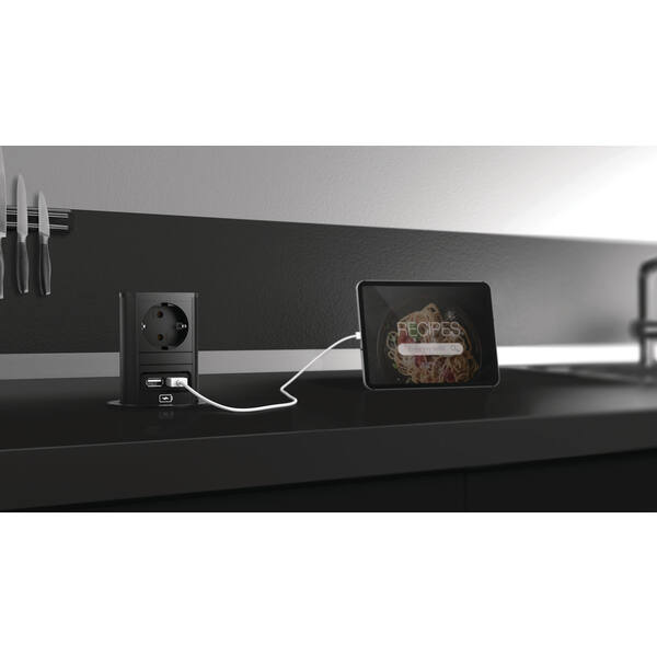 PRESA ELEVATOR 1SCHUKO/ITA+USB NERO