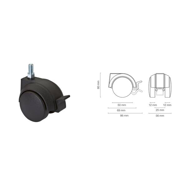 RUOTA NERA CON FRENO D. 50 M 8 X15