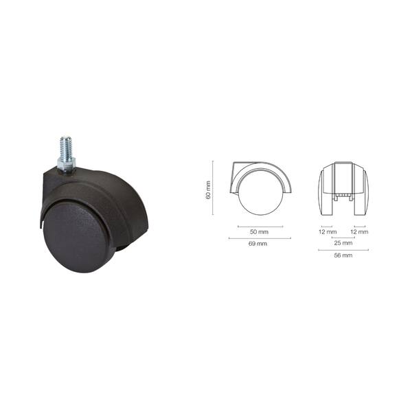 RUOTA NERA SENZA FRENO D. 50 M 8 X15
