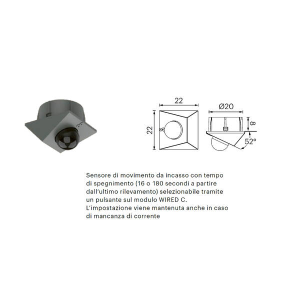 SENSORE PIR MOVIMENTO INCASSO X WIRED