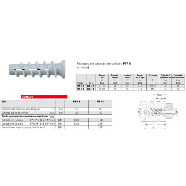 TASSELLI CALCESTRUZZO CELLULAR FTP K 8