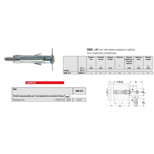 TASSELLI METALLICI FISCHER SBS 9/4 VITE CROCE
